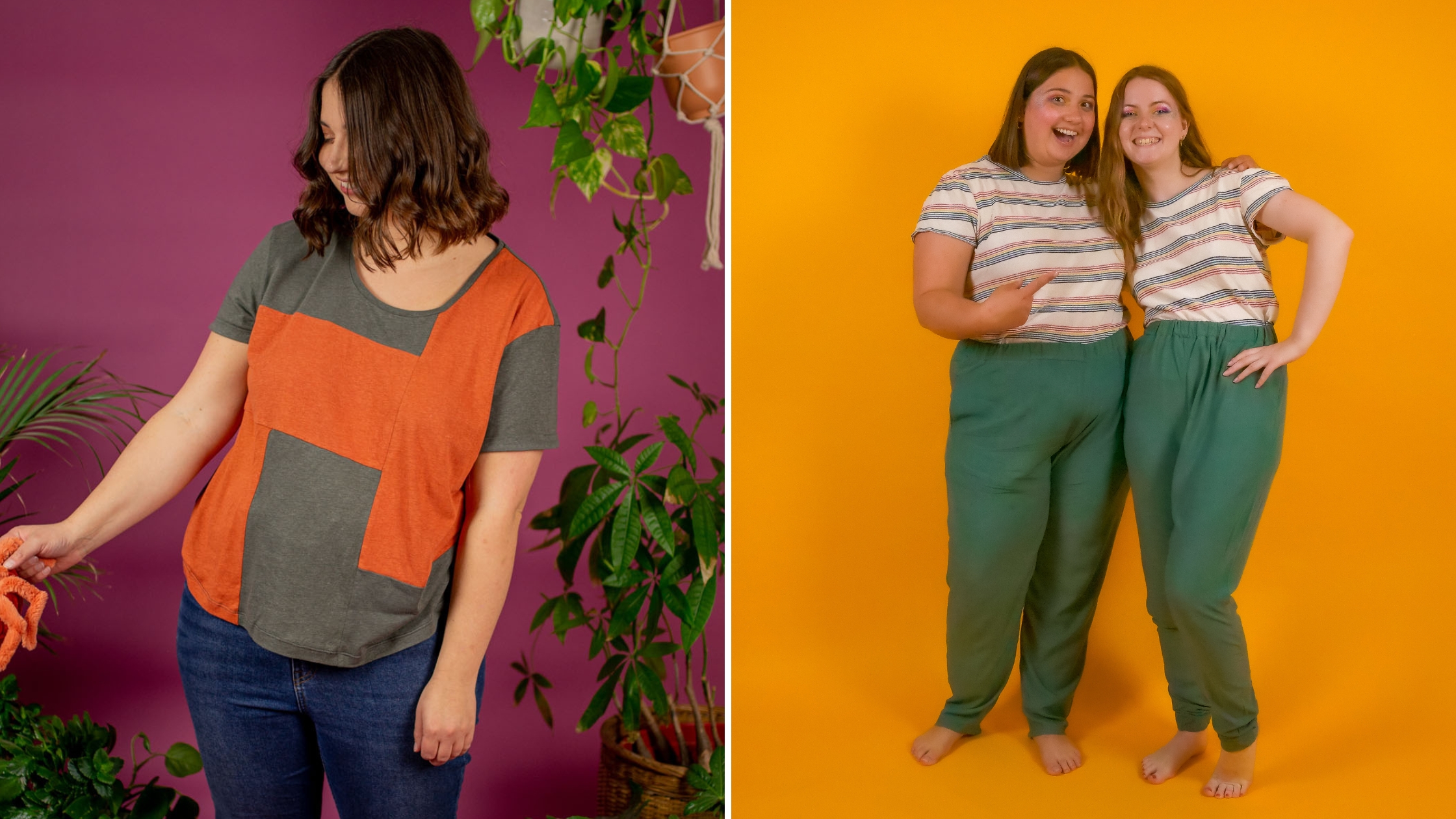J’ai envie de confort et j’aime les pyjamas en jersey (maille extensible). J’ai donc cherché un patron de t-shirt et un patron de pantalon qui puisse se coudre en maille.