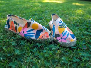 Espadrilles cousues main – vue de face 12 mai 2025 by Margaux Leave a comment Kit espadrilles Payote avec semelles, toile et fil prêt à coudre Share